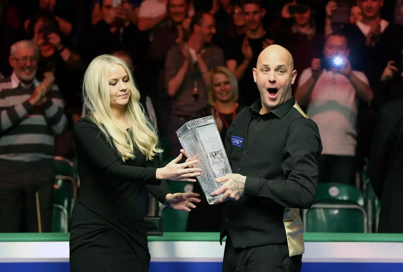 刚才那两分钟,看见他们(孩子们)走进赛场(祝贺我),从他们出生起我就开始梦想这一刻的到来。我从来没想过这一刻会真的到来……42岁,我已经走到职业生涯的最后,孩子们见证我夺冠意味着一切。(决赛比分:马克·金 9-8 巴里·霍金斯