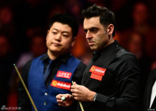 坐在椅子上的奥沙利文已经做好了收拾东西走人的准备,看到这一幕,简直难以相信自己的眼睛,做了一个怪异的表情后,上台清掉黑球,并在最后一局单杆121分终结比赛。