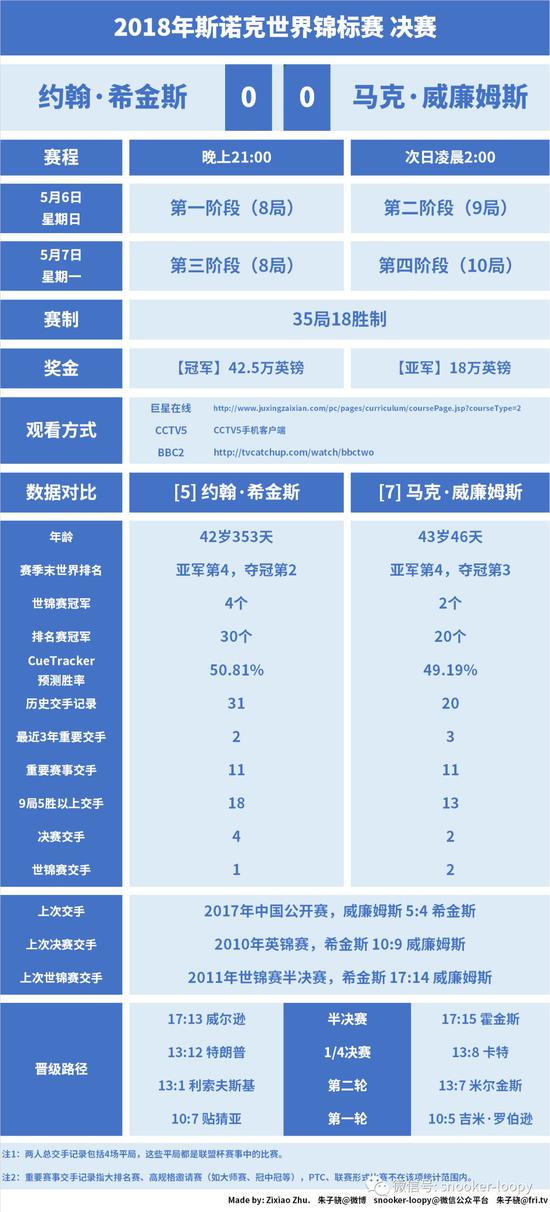 2017/2018赛季,已经年过不惑的七五三杰“横空出世”。奥沙利文拿到了5个排名赛的冠军,希金斯和威廉姆斯分别拿到了2个排名赛的冠军然后神乎其技地会师了世锦赛的决赛。如果赛季初有人跟我说这些,我一定怒斥他根本就不懂球,属于天方夜谭。但是现在事实摆在我们面前的,这对1999年、2000年、2011年的世锦赛半决赛交手冤家,如今在征战职业将近30年时第一次在世锦赛决赛较量,这是要弥补20年前的缺憾,还是要书写更加不可思议的神话?